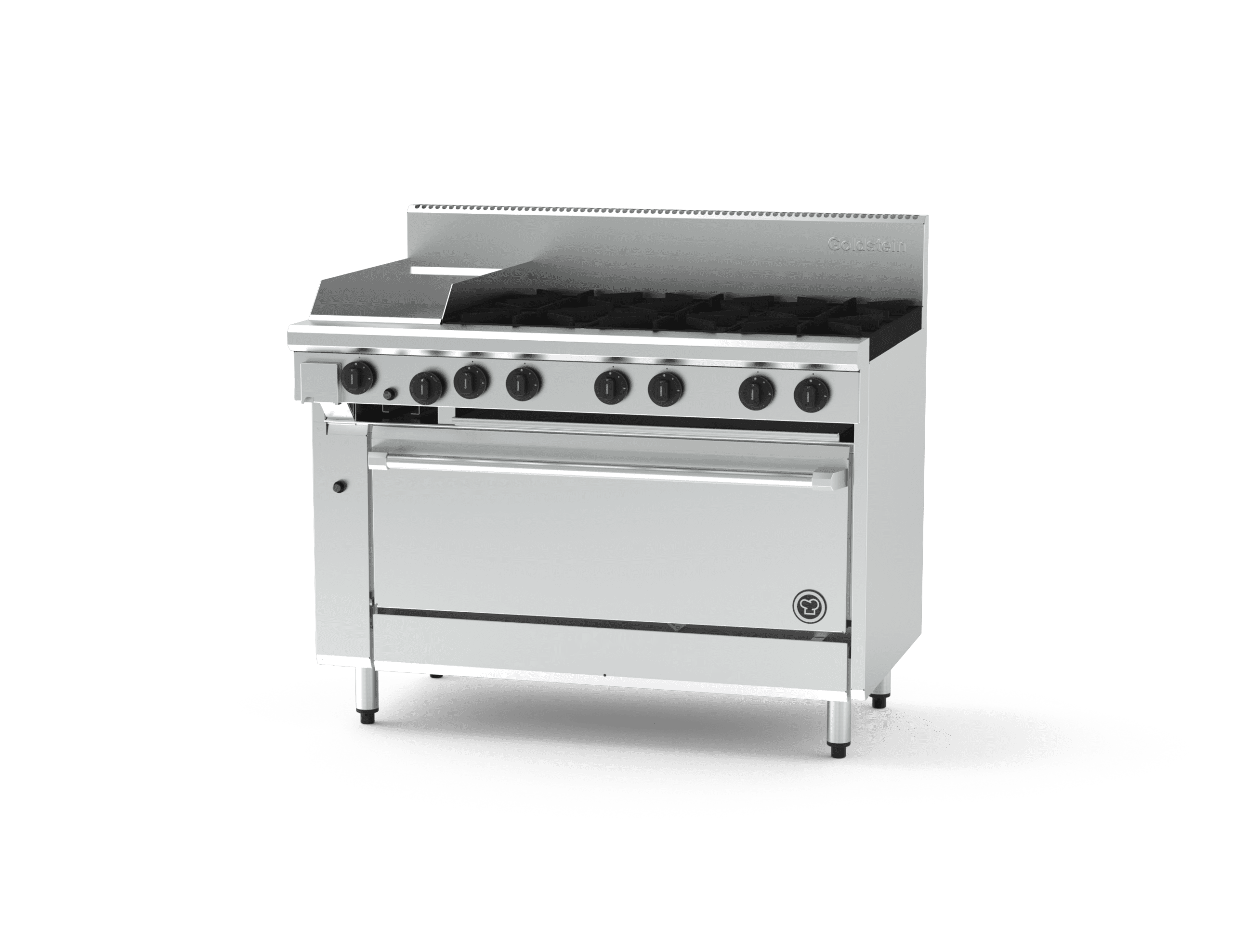 6 burners, 305 x 520 x 20mm griddle, 40” fan forced gas oven
