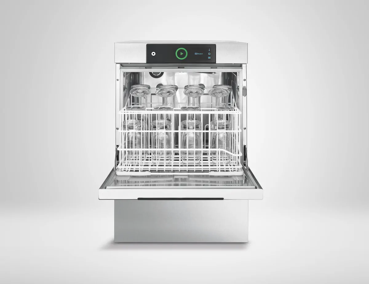 - Compact glasswasher: with an installation height of only 820 mm ideal for narrow places or with integrated reverse osmosis and an installation height of 815 mm ideal for under-counter installation