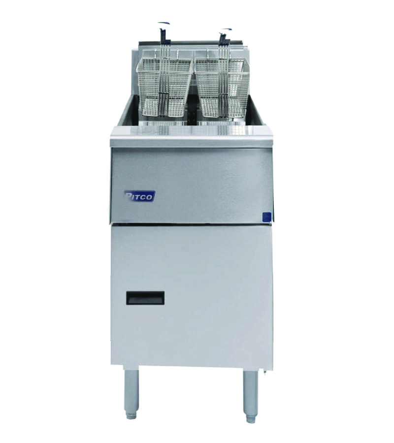 solid state control, split tank , 2 baskets, 2x 11L oil capacity, 9” adjustable legs, lid