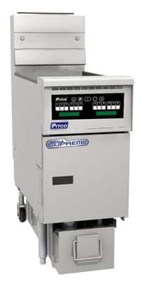 computer control, filter drawer on castors, 2 baskets, 22L oil capacity, lid, 10” front legs, 10” rear rigid castors