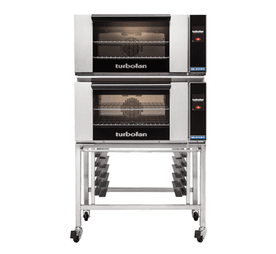 Turbofan E27T2/2 – Full Size Electric Convection Ovens Touch Screen Control Double Stacked on a Stainless Steel Base Stand